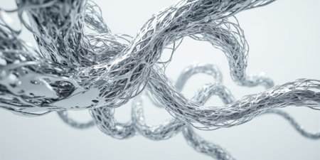 Abstract Metallic Wireframe Mesh in Chrome and Black A futuristic, tech-inspired composition with interwoven metallic wireframe patterns in reflective chrome