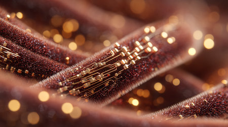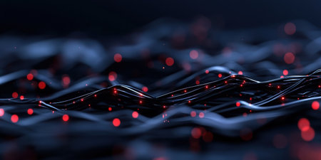 Glistening red lights dance across fluid, wave-like structures, embodying a modern technological realm. This captivating artwork invites exploration into the depths of creativity and imagination.