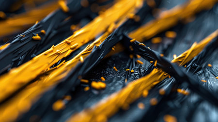 This captivating abstract image features black and orange strands dynamically arranged against a dark backdrop, showcasing movement and energy.