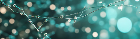Dark teal bokeh lights on abstract background with delicate strands, AI generated
