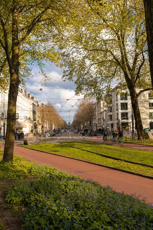 AMSTERDAM, NETHERLANDS - APRIL 13, 2019: Cyclists on the streets of Amsterdam, Netherlands
