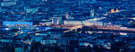 Linz panorama at night. Linz, Upper Austria, Austria.