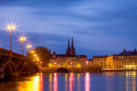 Blois, France - July 21 2016: Jacques Gabriel bridge in Blois, on a cloudy evening