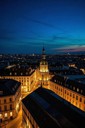 beautiful illuminated cityscape of the old harbor of La Rochelle
