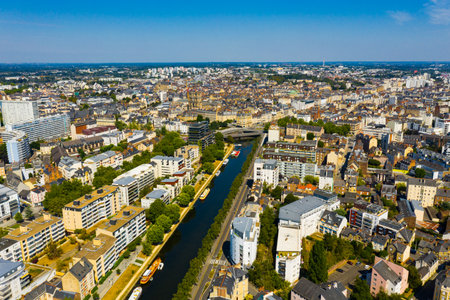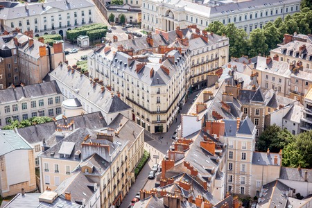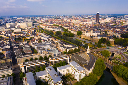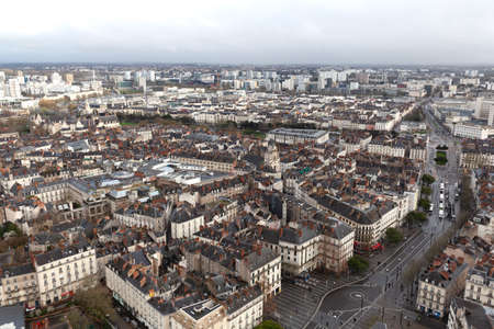 Nantes aerial panoramic view. Nantes is a city in Loire-Atlantique region in France