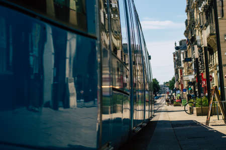 Reims France July 02, 2018 View of the tramway of the city of Reims in France in the morning