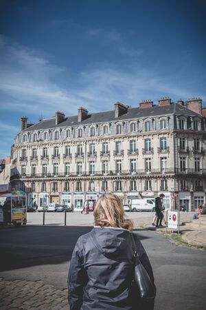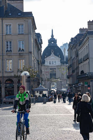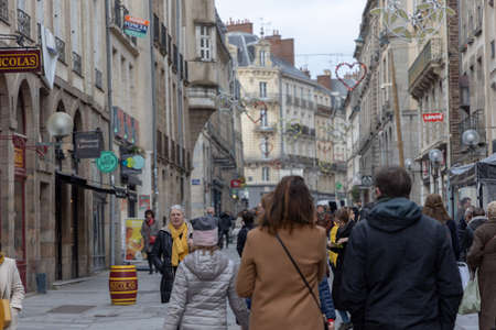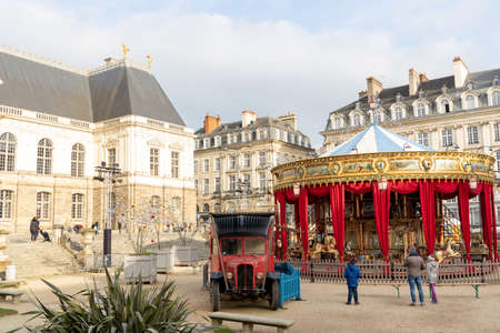 Rennes, France - December 28 2019: Beautiful winter day in Rennes Old Town, Normandy
