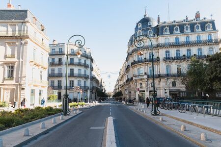 Montpellier, France - January 2, 2019: architectural detail of typical old building in the historic city center on a winter day