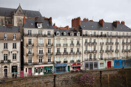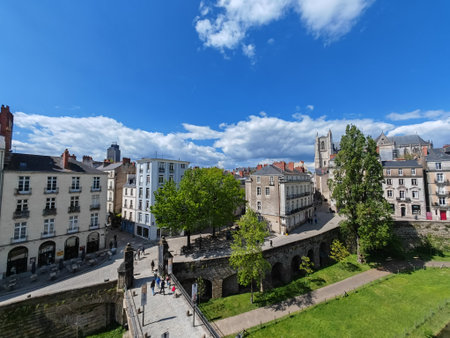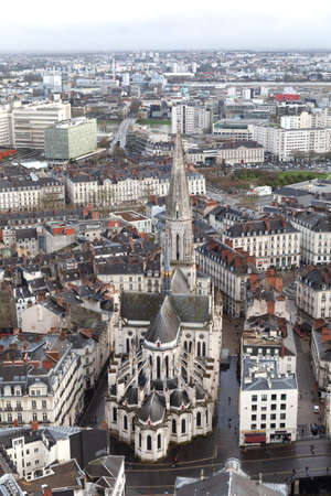 Nantes, France: 22 February 2020: Aerial view of Nantes showing Saint Nicolas Basilica