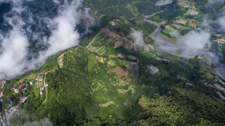 Morning aerial view of the beautiful Shiding District area at New Taipei City, Taiwan