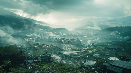 disaster. earthquake in Taiwan, destruction in small towns in the mountains. A ruined city