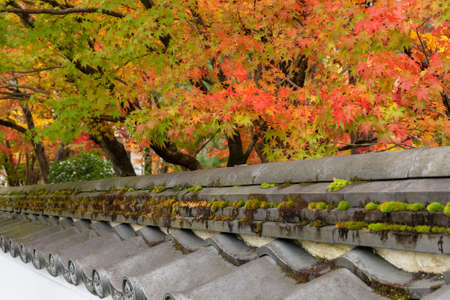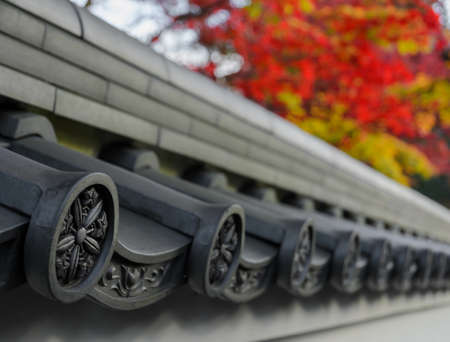 Japanese Buddhist temple roof in autumn season, Kyoto, Japan