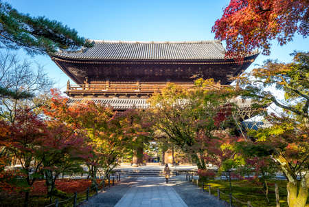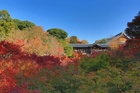 Autumn foliage garden and shrine building at Nanzen-ji Temple, Kyoto, Japan. The most beautiful season to visit Nanzen-ji temple is autumn.