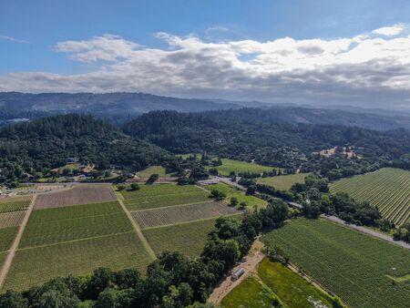 Aerial view of Napa Valley vineyard landscape during summer season. Napa County, in Californias Wine Country.