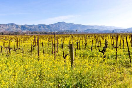 Napa Valley Spring Wild Mustard, Vineyards and Mountains