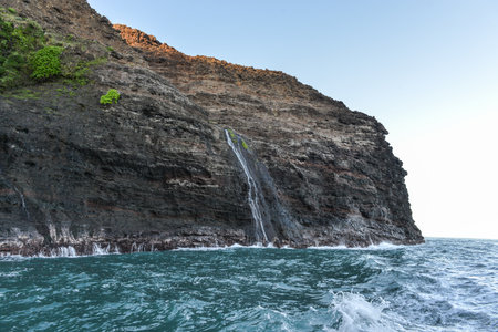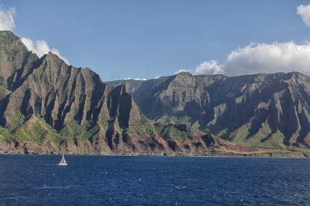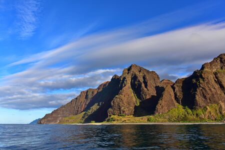 A beautiful scenery of rocky cliffs on Napali Coast, Kauai, Hawaii on a sunny day