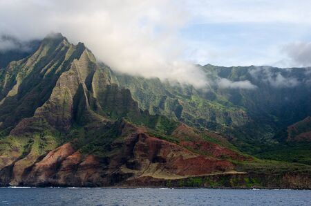 Colorful mountains along the Na Pali coast of Kauai island, Hawaii