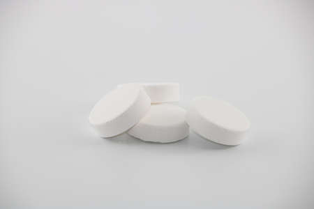 White pill. White background. It was taken in the studio.