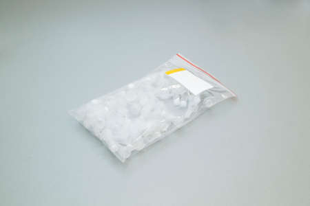 transparent bag with test tubes on a gray background