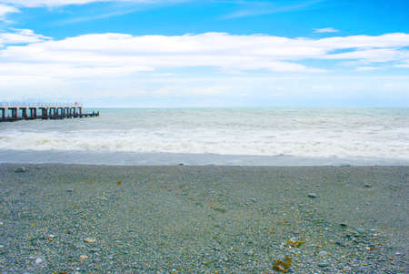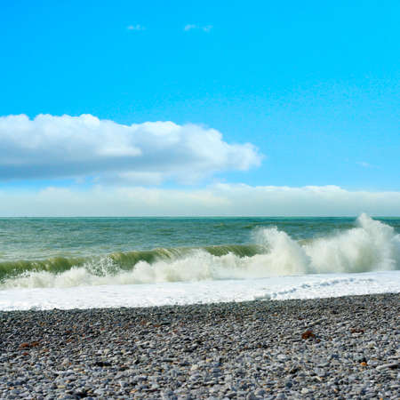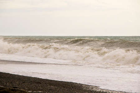 Stormy wheater, waves and splashes in Batumi, Georgia. Stormy Black sea. Water background.