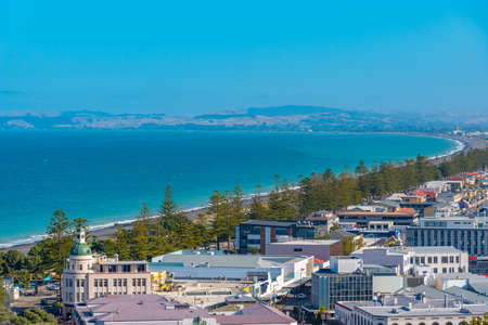 View of Gisborne city and Poverty Bay from Titirangi Domain, Hawkes Bay in New Zealand