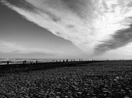 Tourists on the Diamond Beach, Hornafjorour, Eastern Region, Iceland