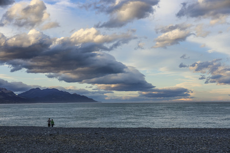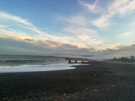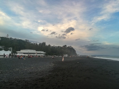 Summer evening on the long gravel beach at Napier, Ahuriri, on New Zealand's North Island.