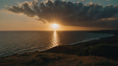 AI Generated. Dramatic Cliffs Overlooking Turquoise Sea at Sunrise on Coastal Landscape