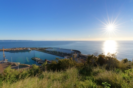 Napier New Zealand October 6 2010; Port of Napier wharf from above on Lookout Hill.