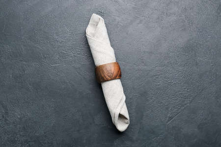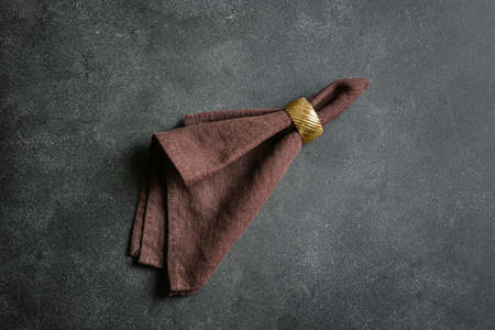 Fabric napkin with ring on dark background