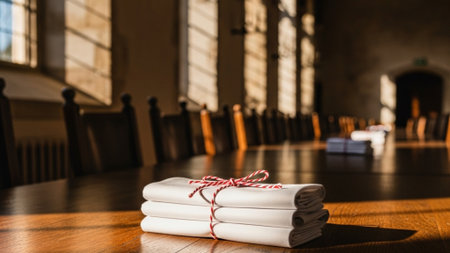 a close-up shot of a stack of napkins on a wooden table, with the edges slightly frayed., created with generative ai