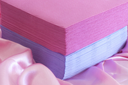 This image captures a close-up view of stacked paper sheets featuring a soft texture and neutral tones. The gray surface creates a subtle contrast.
