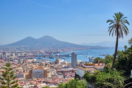 Napoli and mount Vesuvius in the background in a summer day, Italy, Naples, Campania