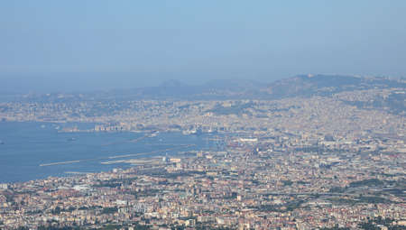 Aerial view of Naples and its gulf, with the Vesuvius in the background