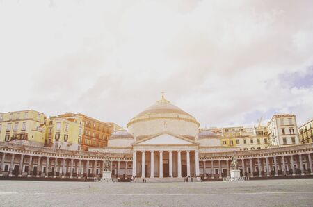 Naples, Campania / Italy- October 24, 2017. The main square of Naples, with the Church of San Francesco di Paola.