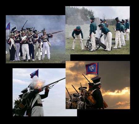 Reconstruction of the battle of the war of 1812. The Battle of Berezina in napoleonic war between Russian and French armies in 1812.