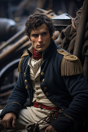 Close-up portrait of a man in historical military uniform