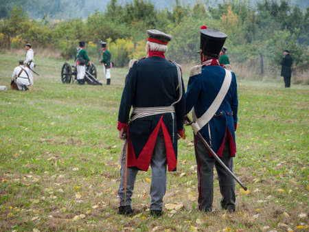 10.21.2012, Maloyaroslavets, Russia. production reconstruction of the battle of 1812 between the French and Russian armies by enthusiast forces.