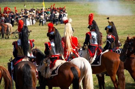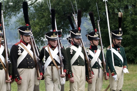 Grossbeeren, Teltow-Flaming, Brandenburg, Germany, August 2012: reenactment of the historical battle against the French troops under Napeoleon in defense of Berlin von 1813, led by General von Buelow.