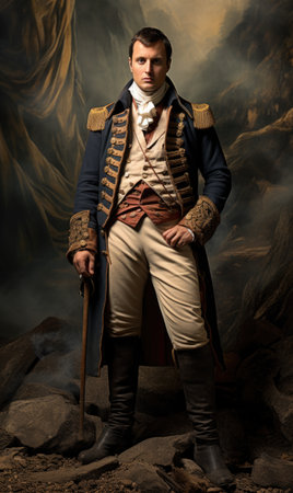 A male Napoleon army officer. Military uniform of the Napoleon era. Army officer 1812.