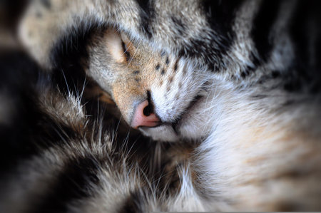 Close up of cute sleeping cat, defocused, selective focus, blurred background