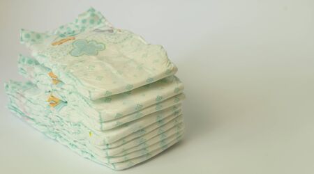 Stacks of diapers stacked in a pile on a white background. Healthcare