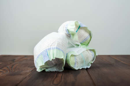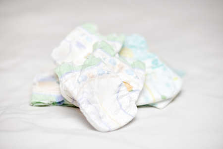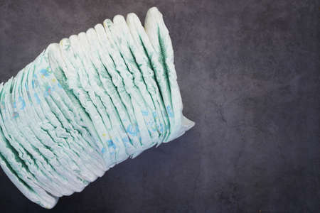 Diaper waste, dirty diapers. Disposal of used baby diapers.