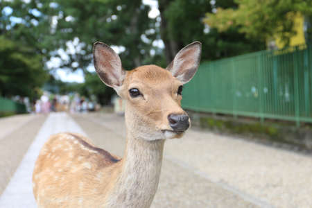 Deer in Nara Park look away with the camera facing