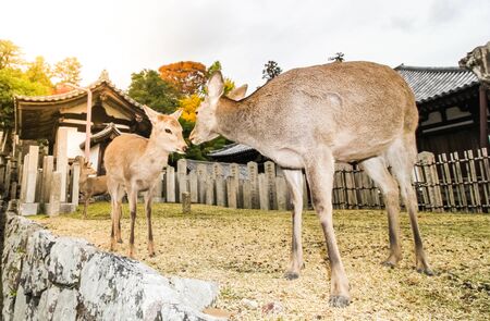 Nara Deer Park autumn temple street in Japan