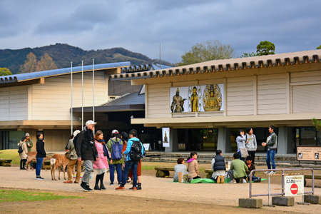 NARA, JP - APRIL 9 - Nara National Museum facade on April 9, 2017 in Nara, Japan.
