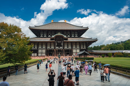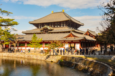 Nara, Japan - November 23, 2024: People visiting Todai-ji (Eastern Great Temple) founded in the 8th century