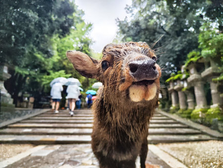 Wet Wild Deer in the Nara Park, Japan