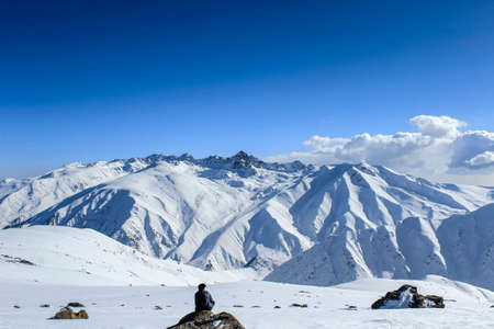 Winter season, Gulmarg is a town, a hill station, a popular tourist & skiing destination, Kashmir, India