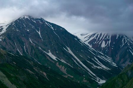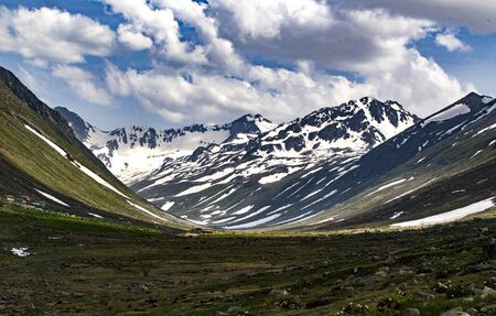 Mountains with glacier view. Front side glacier background with blue clouds. Kackar Mountains National Park, Turkey.
